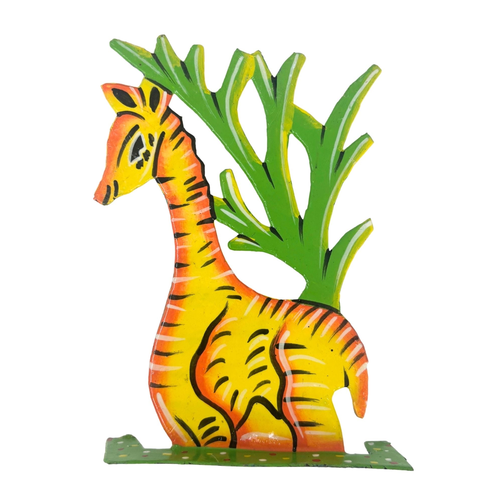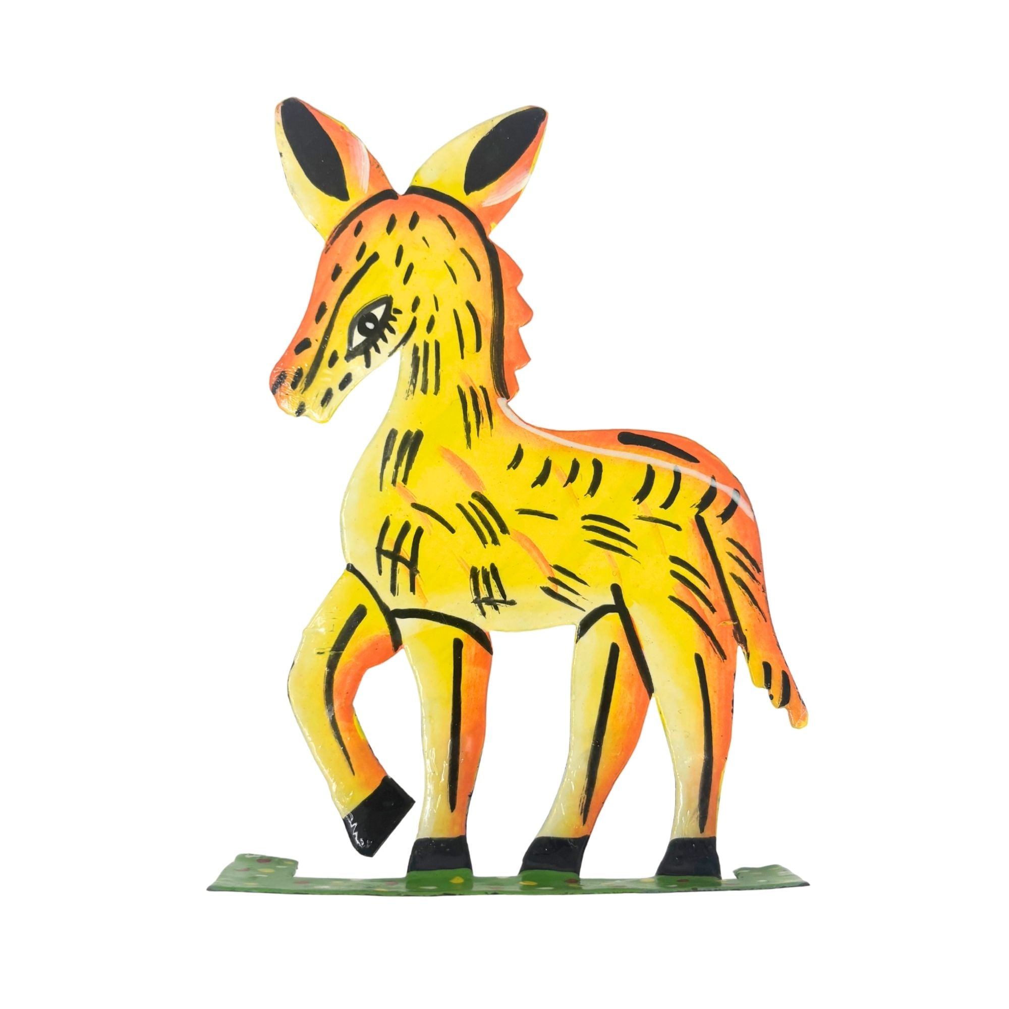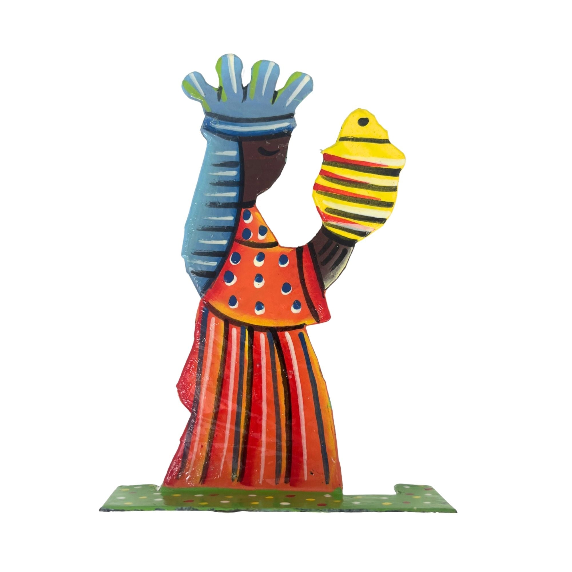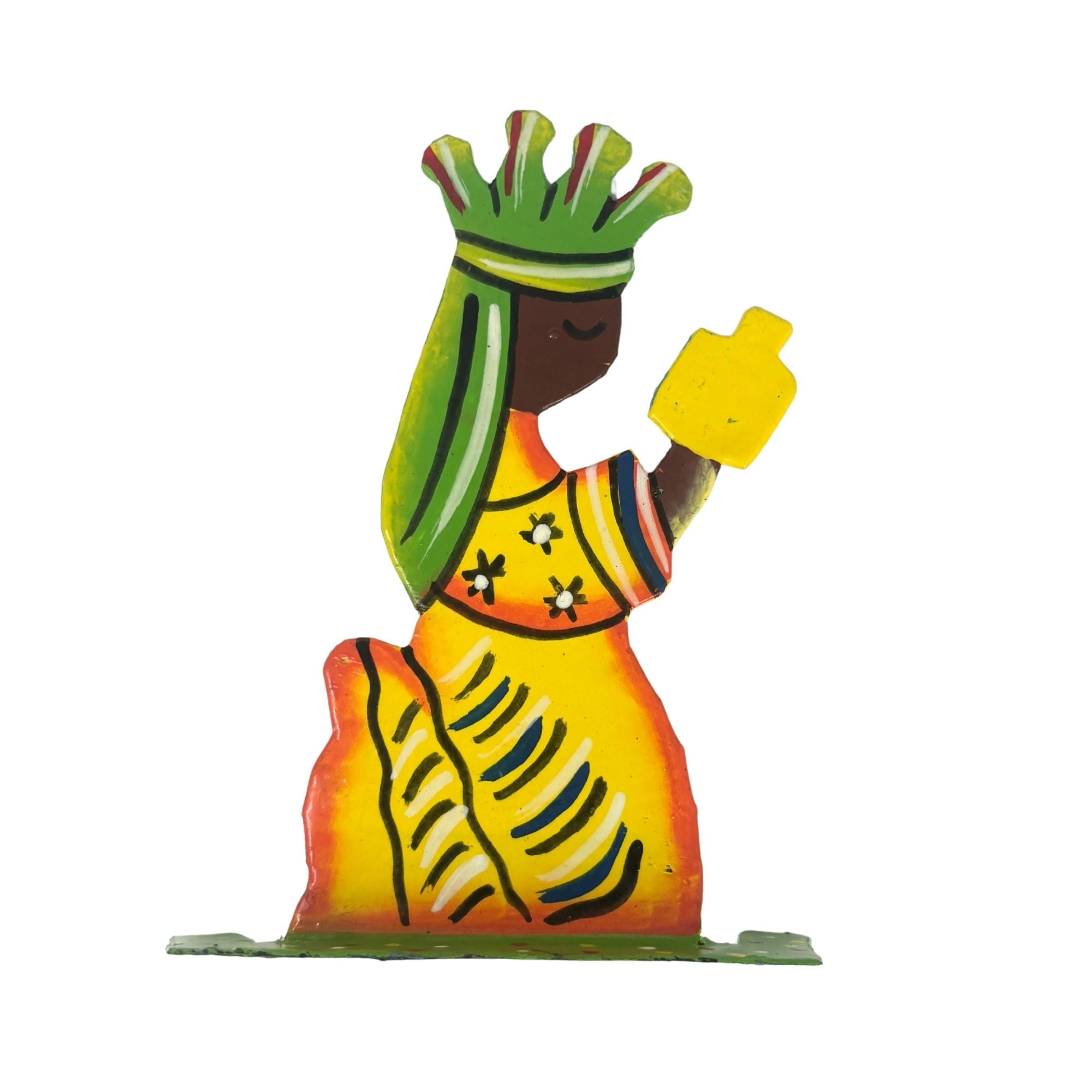 This Nativity set is handcrafted by Haitian metal artisans who transform recycled oil drums into expressive works of art. Made under fair trade principles, each purchase supports artisan livelihoods and preserves traditional metalworking craftsmanship in Haiti.