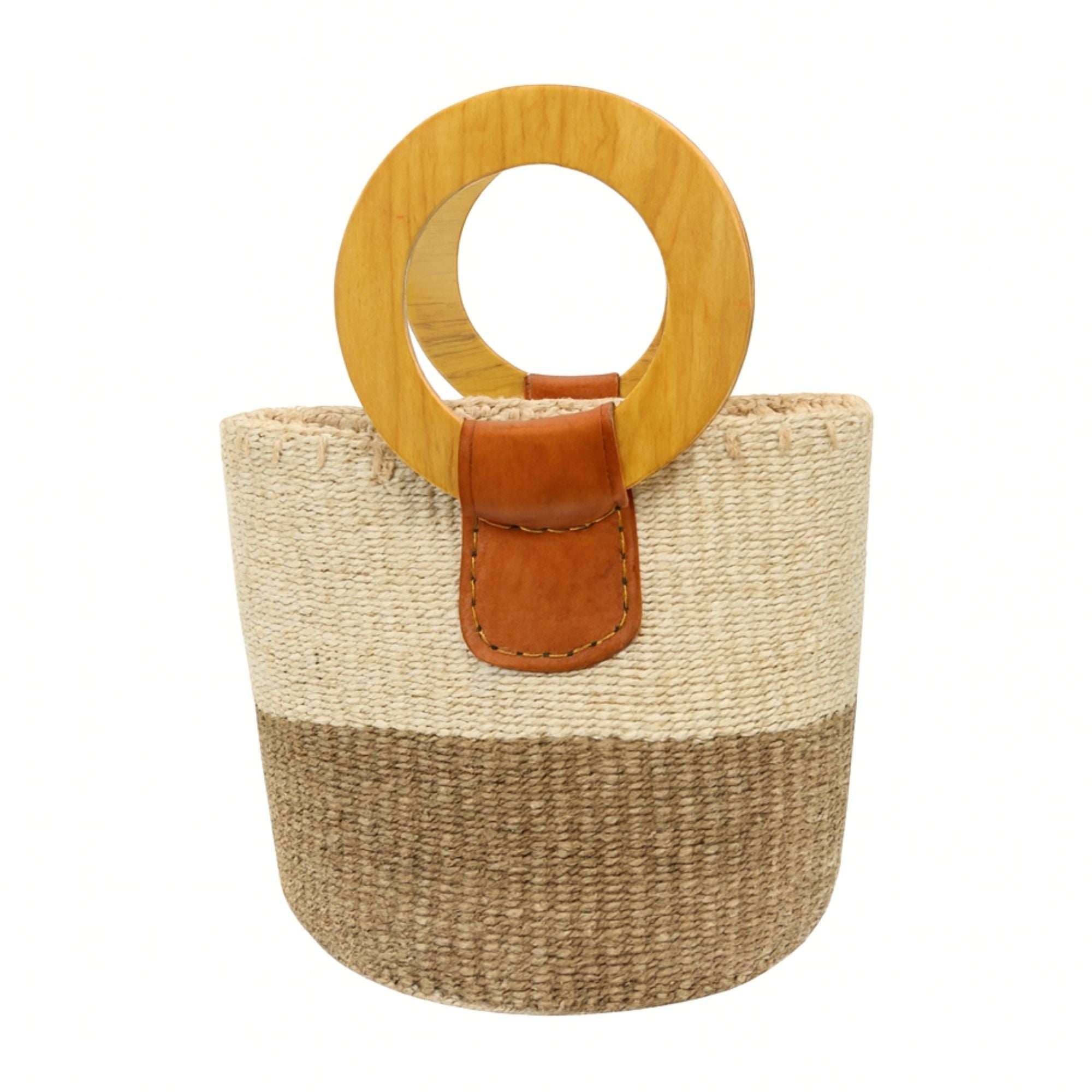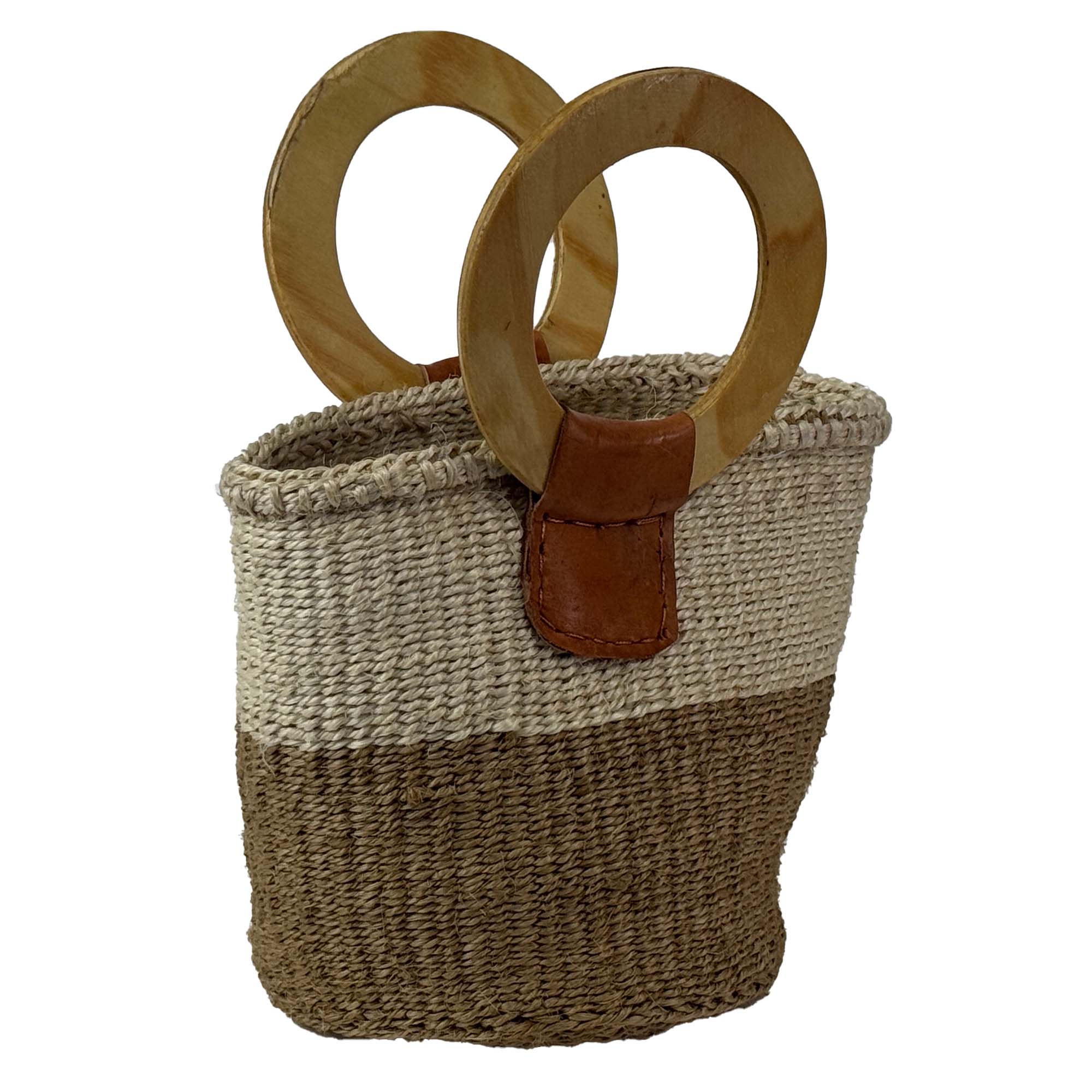 A timeless, everyday carryall handcrafted in Kenya from natural sisal fiber and finished with smooth wood handles. This petite bag stands 10 inches tall and is beautifully woven by women artisans, blending traditional craftsmanship with clean, minimalist style.